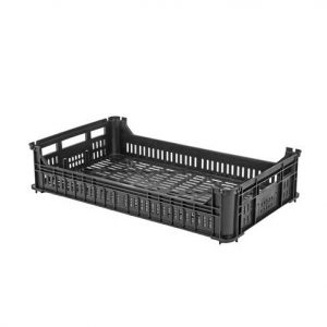 Caixa plástica para fruta, hortaliça, peixe, carne, pão e utilidades c/ fundo fechado e lateral aberta. Material: Polipropileno PP – Muito Resistente Peso: 1092 grs. Tamanho: 575x390x148 CX-575A