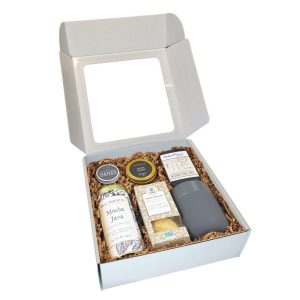 Caixa Cartão Presente / Envio Postal Branco c/Janela Vintage – 20x20x7cm