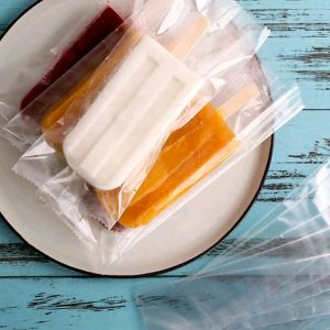 - Saco plano, com zip hermético, frente 100% transparente e fundo metalizado.