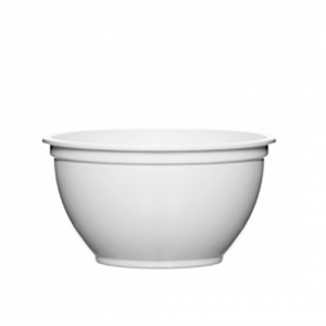 Prato de plástico branco, ideal para sopa.
