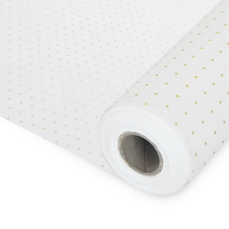 Rolo Papel Seda c/impressão Bolinhas Douradas 62cmx100mtrs
